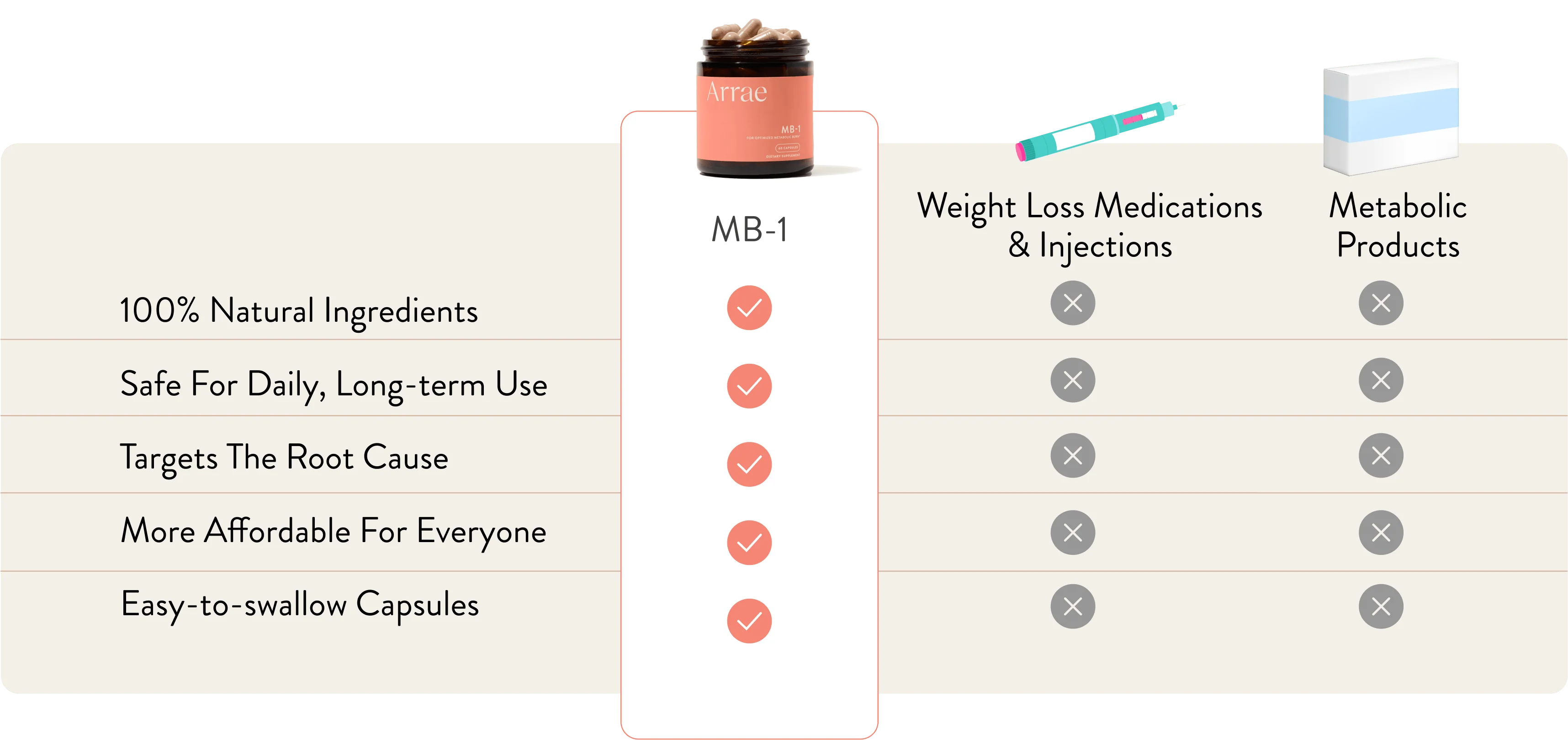 MB-1 by Arrae is power packed with clinically-studied herbs, a targeted probiotic, and essential nutrients that work together to supercharge your metabolism by up to 500%.